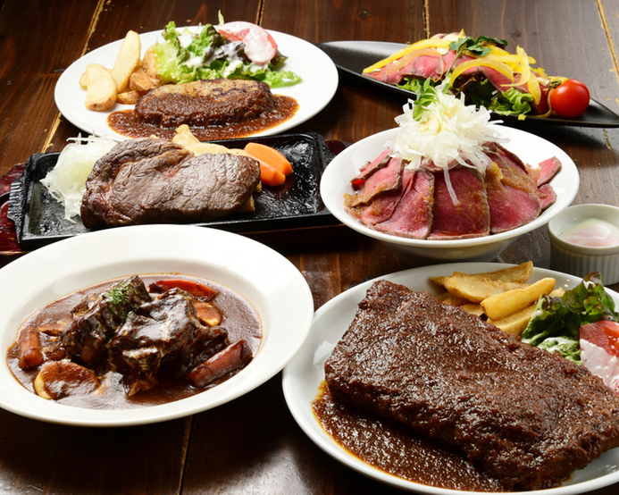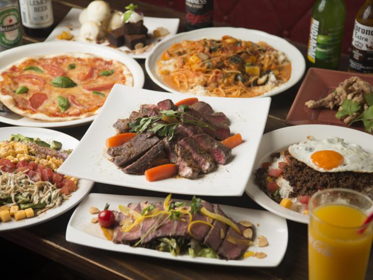 ステーキやハンバーグなどの肉料理をメインに、ピザやパスタなど、その数なんと100種類以上もの多種多様なメニューがずらり。